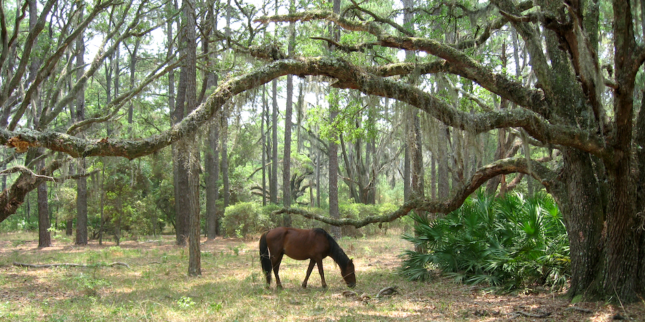 The island has over 9,800 acres of designated wilderness including forests, salt marshes, and untouched beaches. They provide habitats armadillos, sea turtles, and the island's famous wild horses. These feral horses, believed to be descendants of Spanish horses brought over in the 16th century, roam freely, adding to the island's wild charm.
